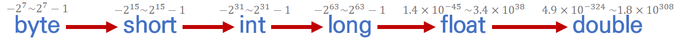 // 그림에는 char이 빠졌지만 char에서 short, byte로 축소 변환이 일어난다.